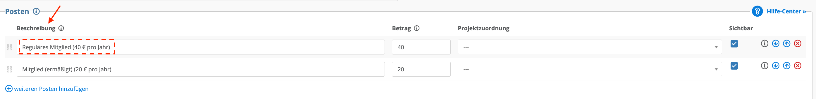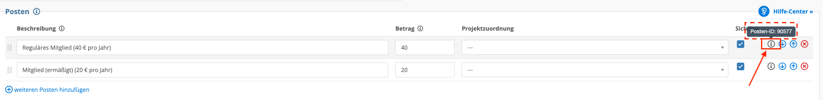 - %fb_item_id% (Posten-ID, siehe auch Formular-Einstellung, Maus über das "i" halten in der Posten-Zeile oder Export von Transaktionen)