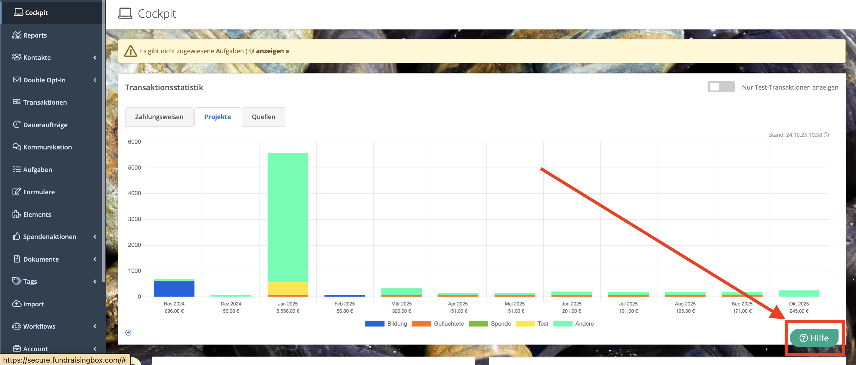 Wenn Sie Fragen haben, können Sie in der FundraisingBox unten rechts auf den “Hilfe”-Button klicken und unsere Lösungsartikel einsehen.