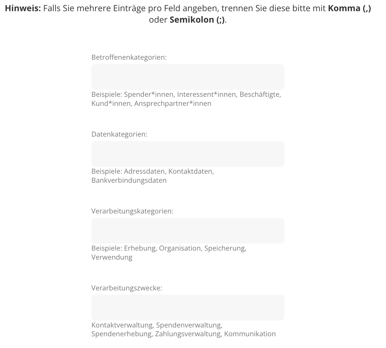 - Befüllen Sie nun die gewünschten Kategorien, welche Sie ergänzen möchten.