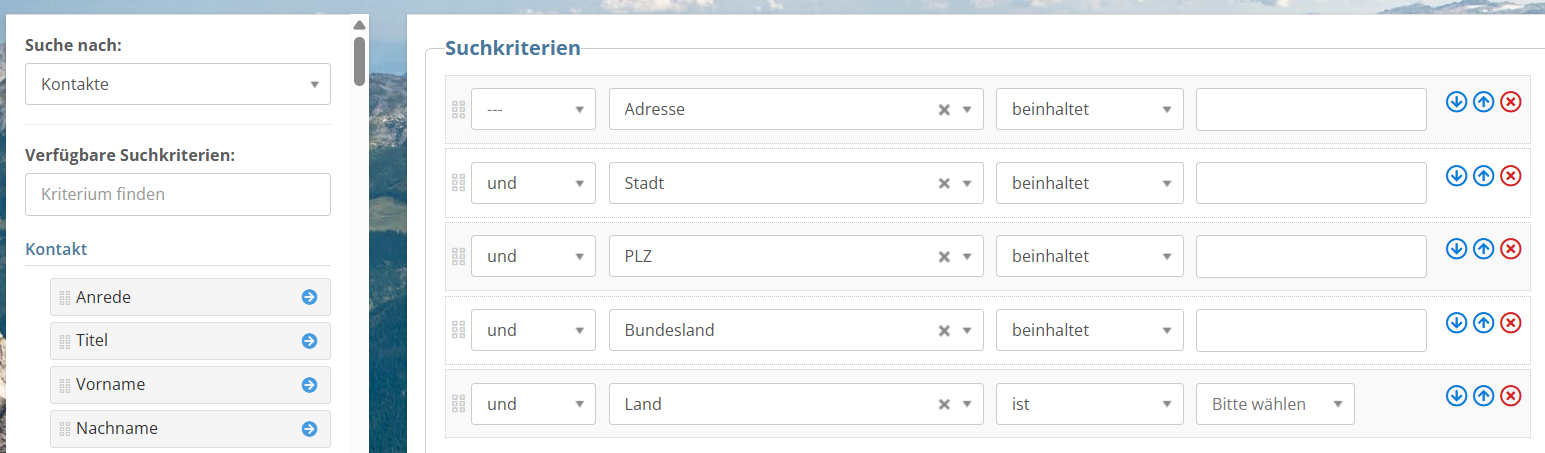 Wählen Sie die passenden Suchkriterien aus, je nachdem, welche Informationen zur Adresse eines Kontakts Sie suchen.