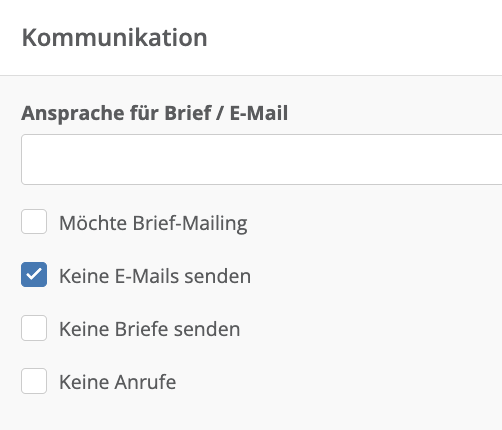 - Ausschluss Hinweis: Kontakte, die "Keine E-Mails senden" als Einstellung haben, erhalten bei Workflows keine E-Mail, auch wenn sie in die Filterung passen würden. Die Kontakte erkennen Sie an diesem Merkmal:
