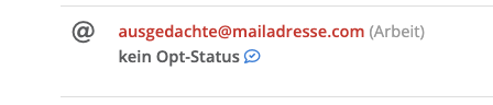 - Hinweis: Wenn im Kontakt "keine E-Mails senden" als Kommunikations-Einstellung hinterlegt ist (E-Mailadresse ist rot eingefärbt), dann wird dies bei Workflows berücksichtigt - diese Kontakte erhalten dann keine Workflow-E-Mail.