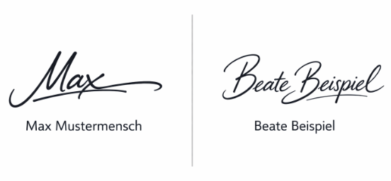 Wenn Sie zwei Unterschriften verwenden möchten, ist das über einen kleinen Umweg möglich. Erstellen Sie dafür eine einzelne Bilddatei, in der beide Unterschriften enthalten sind, zum Beispiel nebeneinander oder untereinander angeordnet und laden Sie diese Datei hoch.