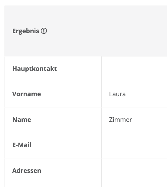 - Nachdem alle Informationen entsprechend korrekt ausgewählt wurden: Prüfen Sie alle Angaben noch einmal in der linken Ergebnis-Spalte.