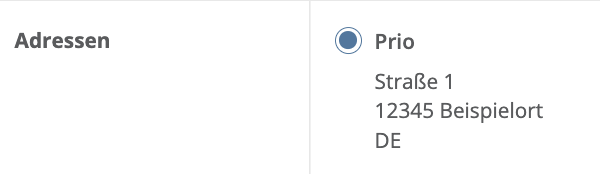 - Wählen Sie Prio bei den Merkmalen aus, wo es mehrere Angaben zur Auswahl geben kann (z.B. E-Mailadresse und Post-Adresse) - nur eine Angabe davon kann die Prio-Information sein.