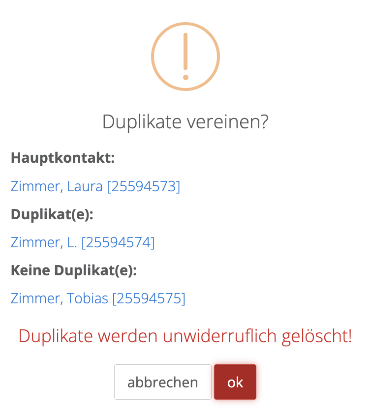 - Daher ist es wichtige, potenzielle Duplikate regelmäßig zu prüfen und im Falle von Dubletten, diese Informationen passend zusammenzufügen.