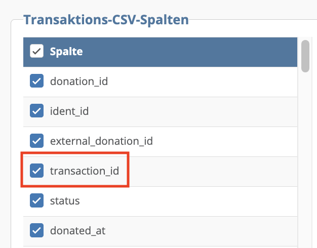 Deutschen Spaltennamen "Transaktions-ID" (kann mit dem Stift auch umbenannt werden)