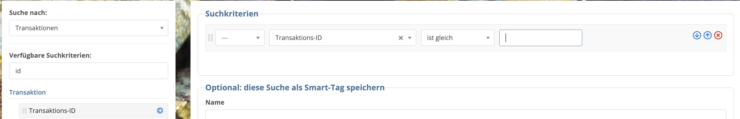 Auch über die Smart-Suche ist die Suche nach mehreren oder einer Transaktions-ID möglich: